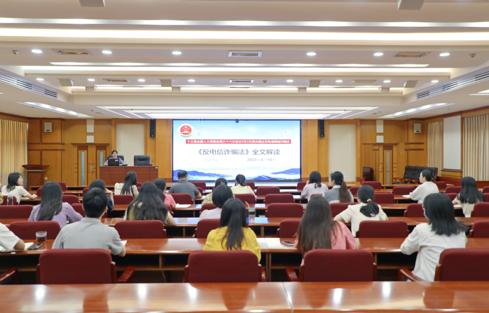活动上,主讲人吴莹围绕《反电信网络诈骗法》制定背景、制定三大必要性、三大亮点解读及电信诈骗的常见类型等几个方面详细讲解,并结合真实案例及宣传视频对常见的电信诈骗类型进行重点讲解。