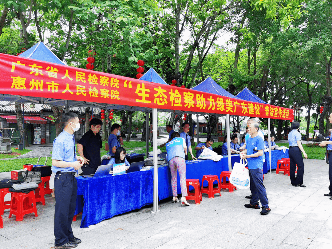 为深入学习贯彻习近平法治思想和习近平生态文明思想,全面贯彻党的二十大精神,6月5日至11日,全国检察机关组织开展以“生态检察助力美丽中国建设”为主题的第四届新时代检察宣传周活动。6月9日,广东省人民检察院与惠州市人民检察院在惠州西湖联合开展“生态检察助力绿美广东建设”法治宣传活动。广东省人民检察院公共关系处处长郑斌峰,惠州市人民检察院党组副书记、副检察长黄顺恒出席活动。