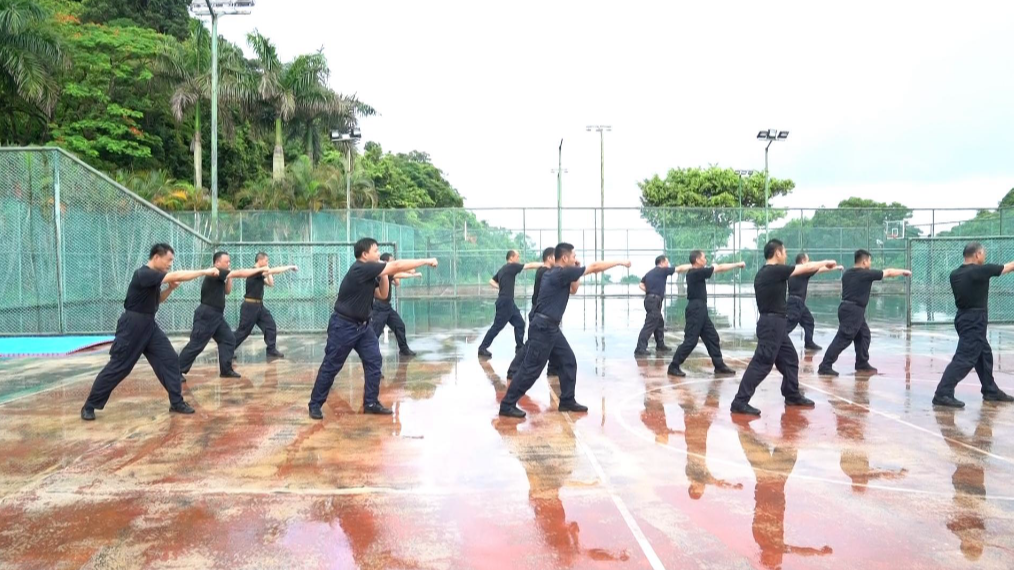 此次联训结合深惠莞三地法警工作实际,安排了具有片区训练特色和技能特点的训练科目,促使参训学员熟练掌握基础理论、增强基本体能、提高专业技能,进一步提升综合素质和工作水平,助推打造一支政治坚定、业务精通、作风过硬、纪律严明、执法公正的司法警察队伍,为全面服务保障检察工作奠定坚实基础。 历经10天在烈日下高强度的片区联合训练后,结业仪式上,来自深惠莞三地的训练支队,无惧大雨瓢泼,精神抖擞地进行着集训的成果展示。深圳法警支队展示了二十四动擒敌拳,惠州法警支队、东莞法警支队分别进行了队列训练展示与警棍盾牌操展示,集训成果展中还对手枪操作与使用进行了展示。 此次联合训练,全体参训人员全身心投入高强度训练,力求学有所用、练有所成,助力打造“高素质、严作风、新形象”的广东司法警察队伍。接下来,深惠莞三地检察机关也将以此次联训为契机,进一步强化法警业务沟通交流,深化开展互帮互教互学,努力为广东检察工作现代化建设提供有力警务保障。