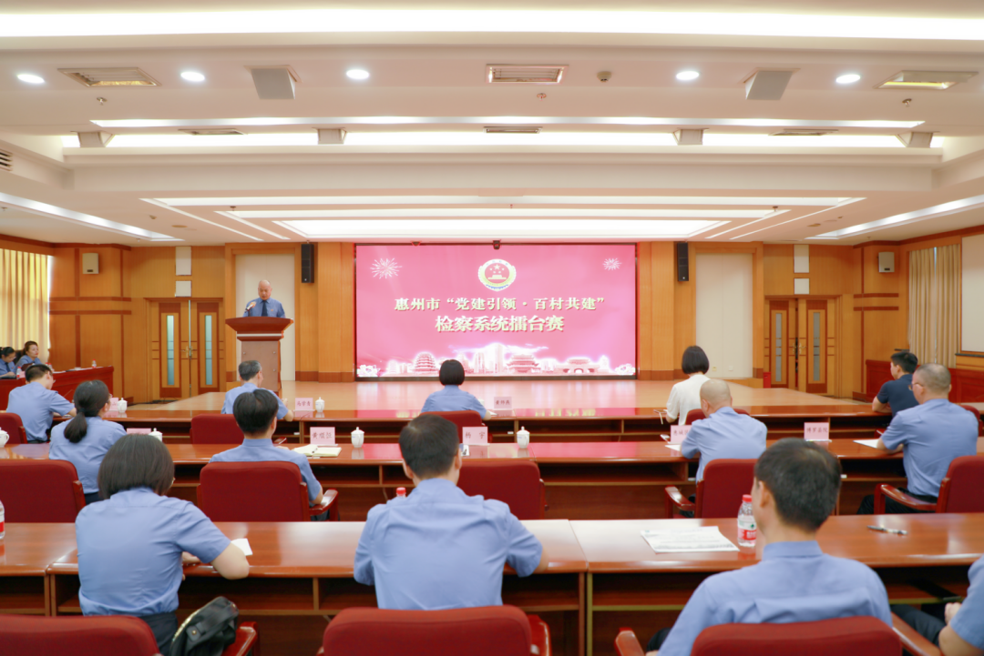 擂台比武展风采,党建引领促发展。7月6午,惠州市“党建引领·百村共建”检察系统擂台赛在市检察院举行,全市检察系统11个参赛项目用书记讲举措图片晒成绩、剧演展风采等方式,展示了结对共建党组织“党建引领”为抓手,以能动检察履职提升基层治理效能、促进乡村振兴的实绩。