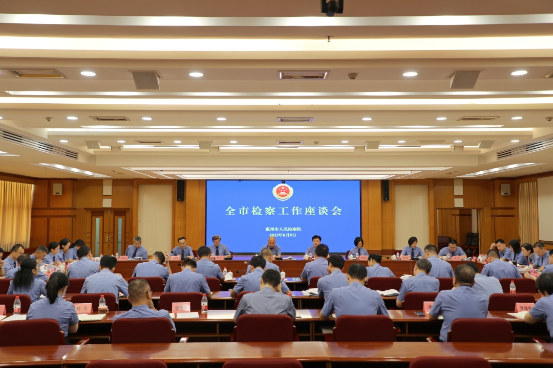8月9日上午,惠州召开全市检察工作座谈会。会议坚持以习近平新时代中国特色社会主义思想为指导,全面贯彻习近平法治思想,深入贯彻党的二十大和习近平总书记视察广东重要讲话、重要指示精神,认真落实省委十三届三次全会、全国大检察官研讨班、全省检察长研讨班和市委十二届五次全会精神,总结上半年工作,研究谋划当前和今后一个时期全市检察工作。