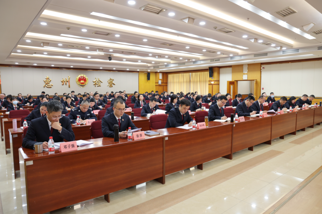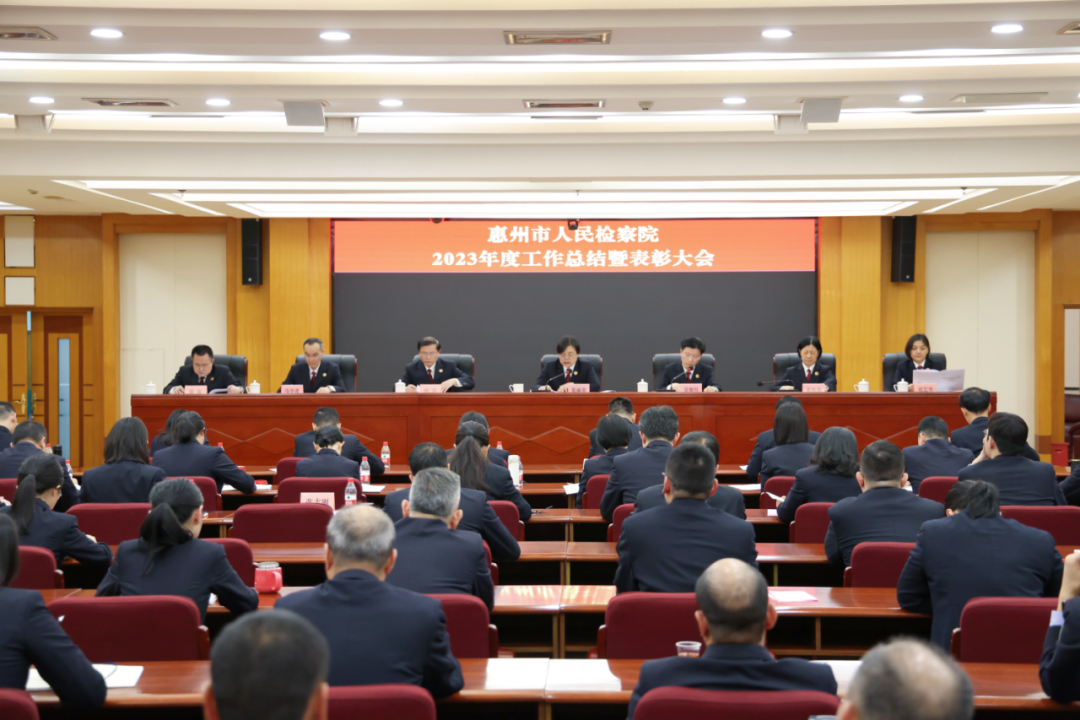 2月5日下午,惠州市人民检察院召开2023年度工作总结暨表彰大会,传达学习上级有关会议精神,总结回顾2023年各项检察工作,对岁末年初有关工作任务进行部署。市检察院党组书记张丽青出席会议并讲话。 会议传达学习了习近平总书记对政法工作的重要指示,以及中央政法工作会议、全国检察长会议、省委政法工作会议、全省检察长会议、市委政法工作会议精神。 会议对2023年惠州检察工作进行总结,并通报了2023年度市检察院集体和个人受表彰和获奖情况。张丽青代表市检察院党组向获得表彰和奖励的集体和个人表示祝贺,向全体检察干警致以衷心感谢和诚挚问候。 过去一年,惠州检察机关锚定“站稳全省前列,争当排头兵”目标,坚持为大局服务、为人民司法、为法治担当,推动检察办案与服务发展同频共振,紧扣人民群众的急难愁盼问题加强司法保障,立足检察主责主业强化法律监督,着力锻造忠诚干净担当的过硬检察队伍,各项检察工作在新征程迈出新步伐、取得新成效。涌现“全国模范检察官”等先进典型,多名干警在全省竞赛中荣获业务标兵和能手,9个案例获评全国、全省典型案例,34个集体和个人获省级以上表彰。 会议要求,要迅速贯彻落实上级有关部署,坚持目标引领,对照工作部署,细化工作任务,确保各项工作起好步、开好局。要切实把“提高站位、重在落实”的总要求贯彻好,把思想认识统一到上级部署和院党组的要求上来。要切实把“全局观念、系统思维”的方法论运用好,坚持全市一盘棋、全院一盘棋、上下一体履职,加强相互配合、衔接协调,保持方向一致,做到同向发力。要切实把“严格严实、安全稳定”的主基调落实好,有力维护社会稳定,守好检察机关安全底线。 市检察院党组副书记、副检察长黄顺恒主持会议,市检察院全体干警职工参加会议。
