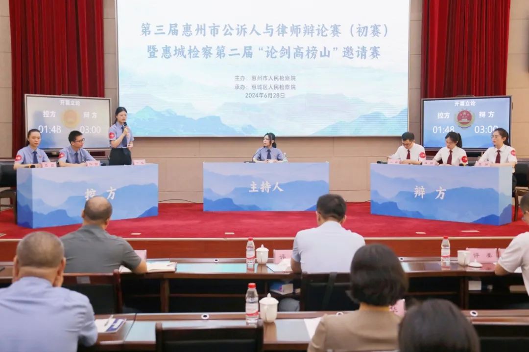 6月28日,第三届惠州市公诉人与律师辩论赛初赛(选拔赛)暨惠城检察第二届“论剑高榜山”邀请赛在惠城区检察院火热开赛,由惠州市检察机关30名干警组成的10支代表队同台竞技,共同奉献了一场充满法理之美、思辩之美的“视听盛宴”。惠州市检察院、惠城区检察院有关领导及相关业务部门干警共同观看比赛。