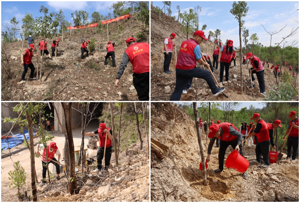3月14日,在惠城区汝湖镇猪仔坑附近山头,市检察院党员干警们热情高涨、分工协作,搬树扶苗、铲土填坑、提水浇灌......100余棵樟树、火焰木等树苗在汝湖山头上“安家落户”。
