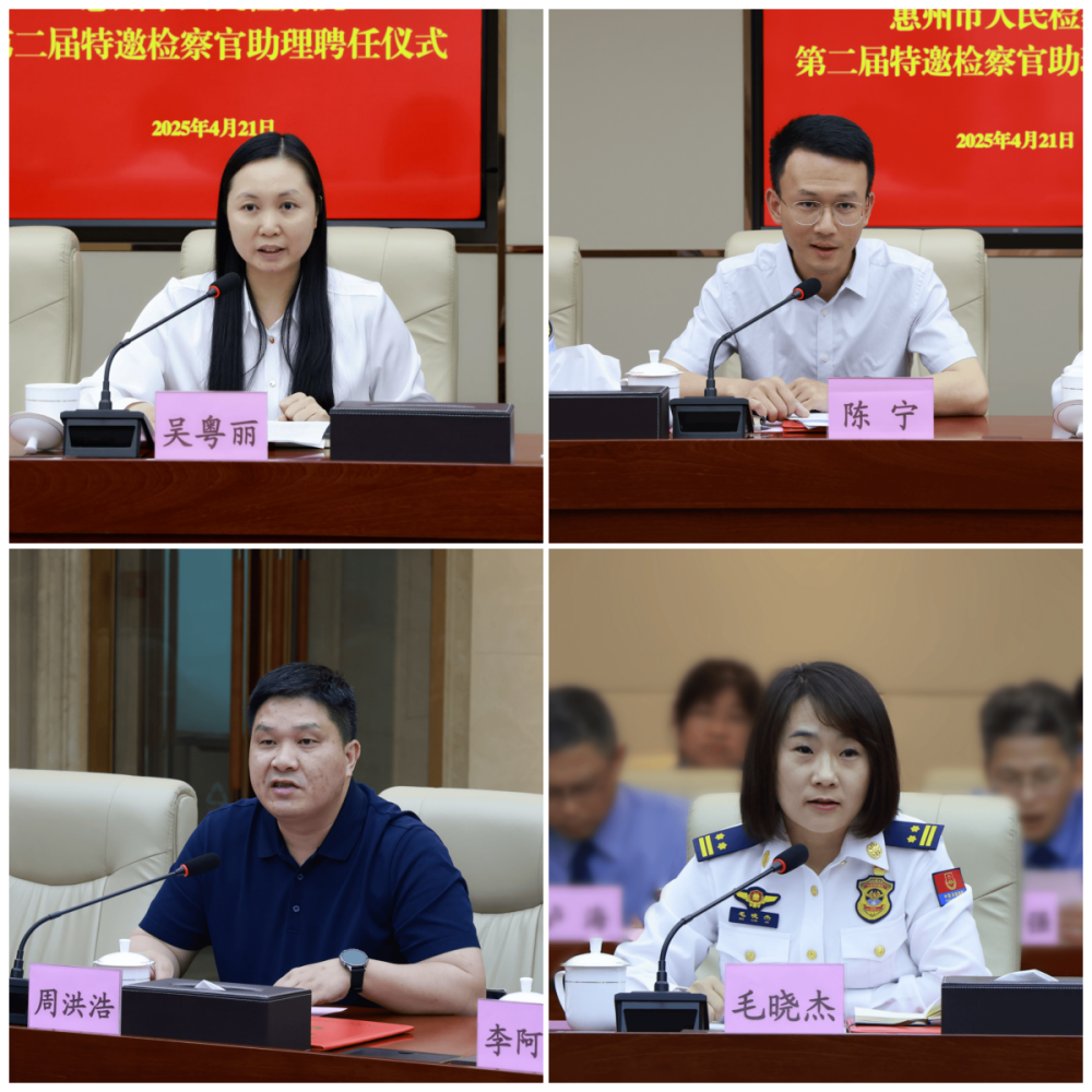 为进一步深化执法司法协作配合,提升检察机关办案专业化水平,4月21日下午,惠州市人民检察院举行第二届特邀检察官助理聘任仪式。院党组书记、检察长张丽青出席仪式并讲话,受聘的18名特邀检察官助理以及市检察院院领导、各部门负责人参加仪式。