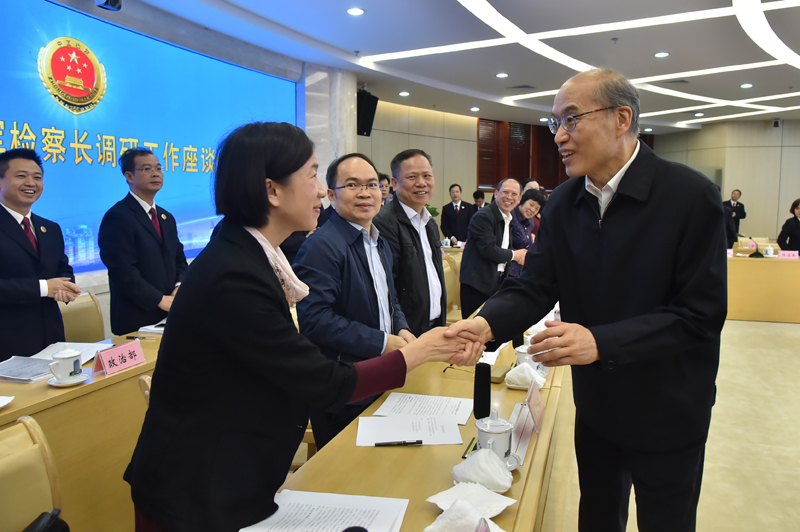 5月9日,最高人民检察院党组书记、检察长张军在广西壮族自治区检察院调研与部分在桂全国人大代表、政协委员座谈。