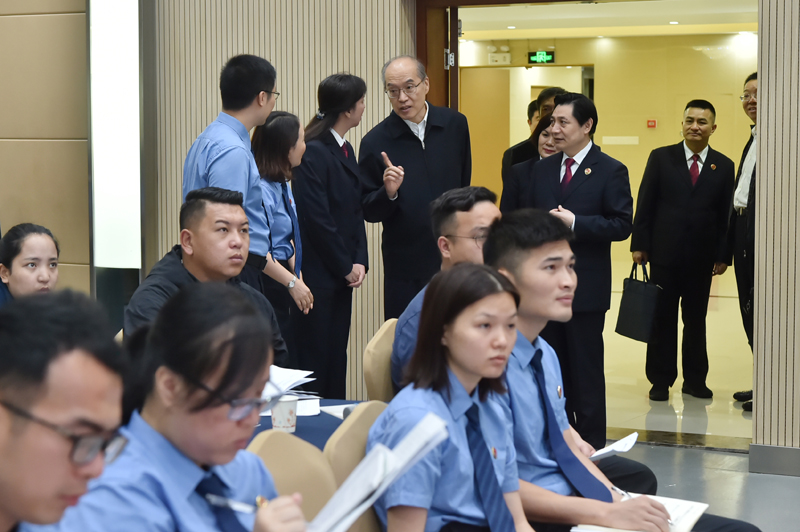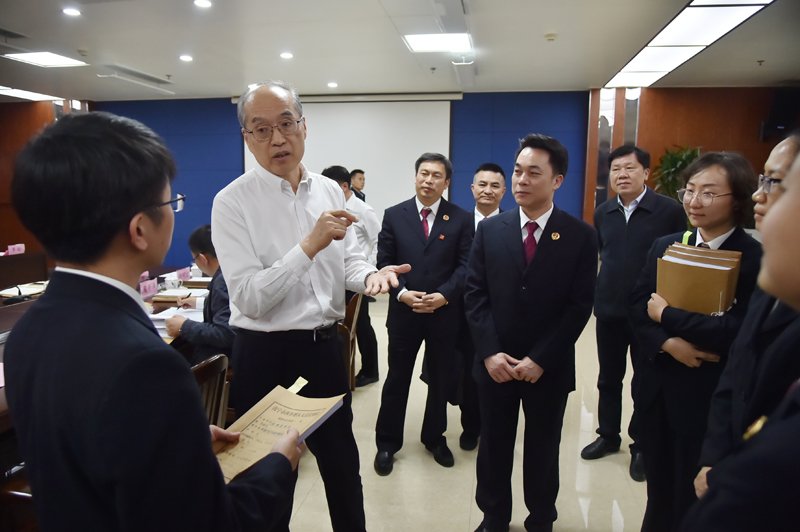 5月9日,张军先后到广西壮族自治区检察院、国家检察官学院广西分院、南宁市检察院和西乡塘区检察院,通过现场视察、查阅案卷、座谈交流等形式了解服务大局、办案工作和队伍建设情况,就如何落实习近平总书记重要讲话精神,与自治区三级院检察官深入交流。从晚上8点到将近10点,调研组还加班查阅了一批案卷。
