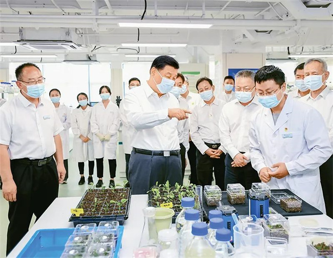 2022年4月10日至13日,中共中央总书记、国家主席、中央军委主席习近平在海南考察。这是10日下午,习近平在位于三亚市崖州湾科技城的崖州湾种子实验室考察。新华社记者 谢环驰/摄