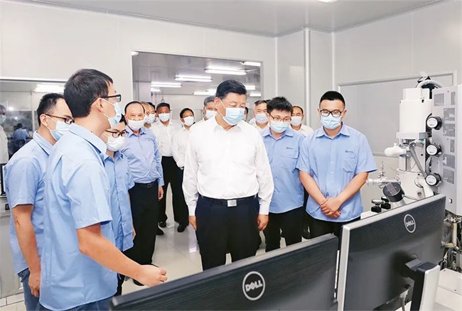 2020年10月12日至13日,中共中央总书记、国家主席、中央军委主席习近平在广东考察。这是12日下午,习近平在潮州市潮州三环(集团)股份有限公司实验室,了解企业自主创新和产业升级等情况。新华社记者 王晔/摄