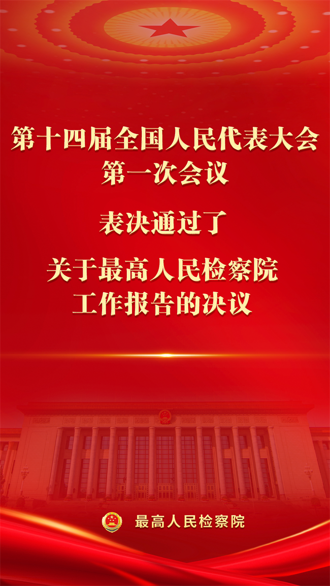 十四届全国人大一次会议表决通过了关于最高人民检察院工作报告的决议。